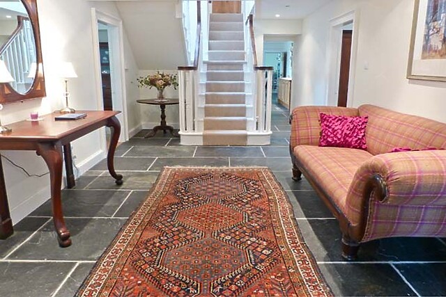 Luxuriously appointed throughout, the accommodation includes a ground floor bedroom with en-suite, and four further bedrooms on the upper floor, two with en-suites. There are two sitting rooms, both with woodburning stoves and big comfortable sofas.