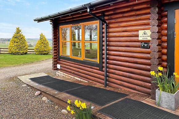 Fingask Log Cabin is an authentic roundwood log cabin set in a stunning rural location in the heart of Scotland near Glenfarg village in Perth and Kinross. One of just three cabins on site spaced approximately 50 yards apart it sits in a farm setting with elevated, unspoilt views across open meadows.