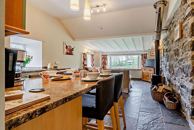 Indulge in the comfort of two cosy bedrooms, one with a sumptuous king-size bed and the other with twin beds, ideal for families or friends. The cottage boasts a well-appointed kitchen and a lounge with a wood burner, perfect for snug evenings in.