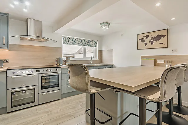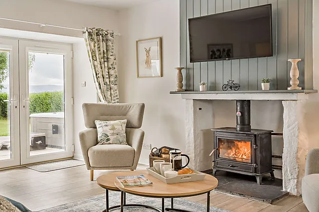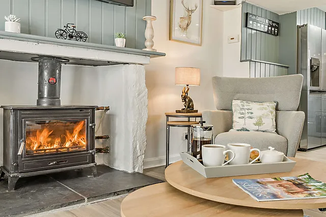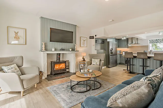 Indulge in the warmth of the wood burner in the spacious lounge after a day of exploring, or unwind in the private hot tub, gazing at the stars. The open-plan kitchen, complete with a breakfast bar, is perfect for family meals, while the enclosed garden with a charcoal BBQ invites al fresco dining.