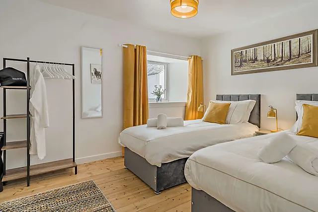 The cottage boasts three tastefully decorated bedrooms, including two flexible super king-size rooms with zip-and-link beds and a cosy single, ensuring a restful night's sleep for everyone.