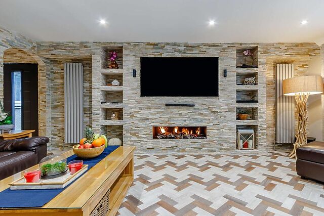 The property boasts a range of modern amenities, including a bespoke kitchen, a gym, and a dedicated indoor space for your canine companions.