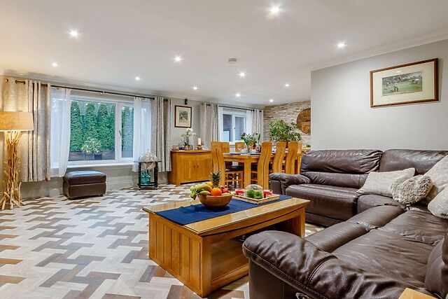 The accommodation boasts four tastefully decorated bedrooms, comprising one super-king-size with an en-suite, two king-size rooms, and one twin room, perfect for children or additional guests.