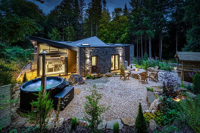 Outside, discover a fantastic garden with water features, custom-built waterfalls and mature trees, offering a beautiful sitting area for alfresco dining with a view over the stream which runs alongside Heilan Roo. On cooler evenings, cosy up beside the fire pit, enjoy a barbecue dinner in the warmer evenings, and savour the added indulgence of a hot tub.