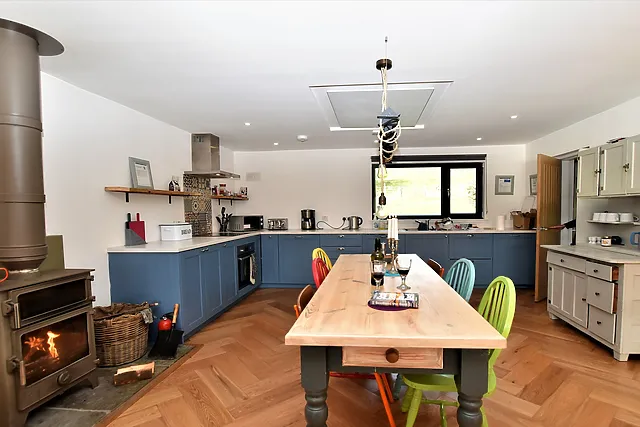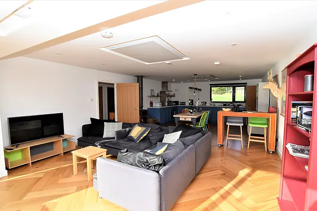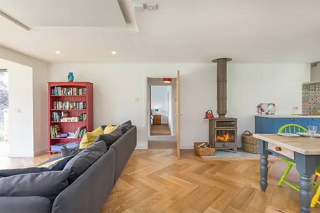 The accommodation boasts a contemporary design with Scandinavian and mid-century influences, creating a cosy yet modern atmosphere.