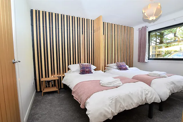 The lodge comfortably sleeps 6 guests in its stylishly appointed 3 bedrooms, with additional sleeping arrangements available on a double sofa bed. The accommodation boasts a contemporary design with Scandinavian and mid-century influences, creating a cosy yet modern atmosphere.