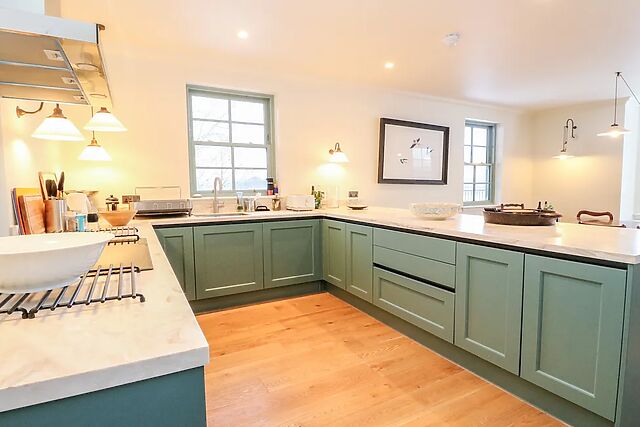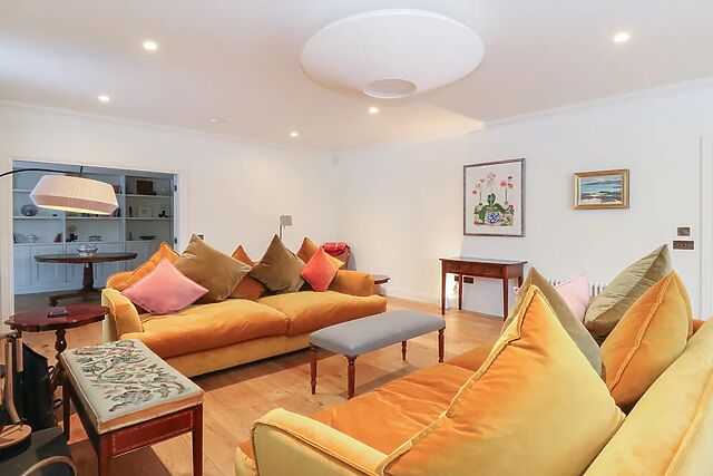 The kitchen and dining space is well equipped, featuring three ovens, an induction hob, fridge/freezer, two dishwashers plus plenty of room to gather around the table. For added convenience, guests have access to a washing machine and tumble dryer which are located in the basement.