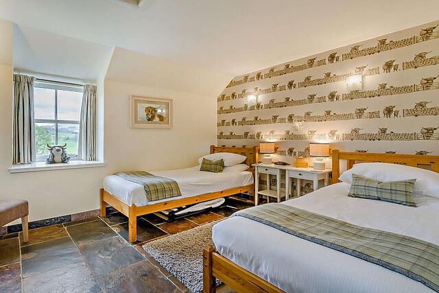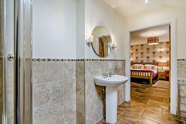 The master bedroom boasts an en-suite, while the twin room provides flexible sleeping arrangements. With two bathrooms, comfort is assured for all guests.
