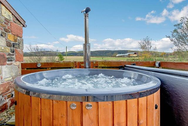 Yes, the accommodation features a fantastic wood-fired hot tub, providing a relaxing spot to unwind and enjoy the stunning countryside views.