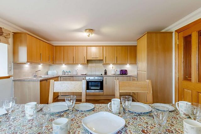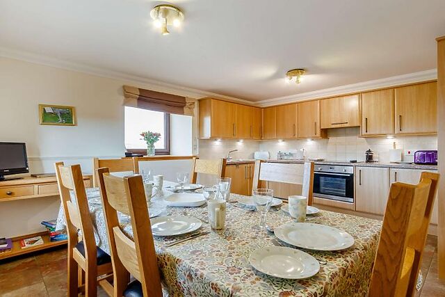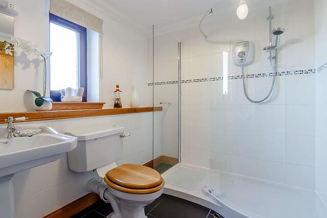 Indulge in the warmth of the underfloor heating throughout the cottage, and enjoy the convenience of a well-equipped kitchen and a spacious lounge with a Juliet balcony. The enclosed patio area is perfect for al fresco dining, complete with a charcoal BBQ, while the large shared lawn offers a children's see-saw for the little ones to enjoy.