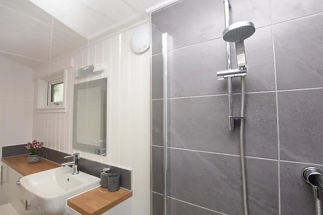 Unwind in the super-king-size bedroom, complete with ample storage and a Smart TV for your entertainment. The stylish shower room adds to the lodge's modern comforts.