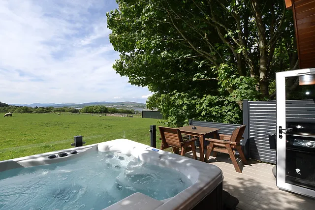 Indulge in the private hot tub, a highlight of your stay, and enjoy the majestic views or dine al fresco with the provided Gas BBQ.