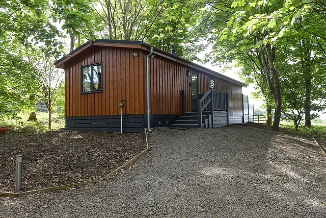 This is a detached lodge, stylishly designed and located in a peaceful private woodland setting, offering luxury and tranquility.