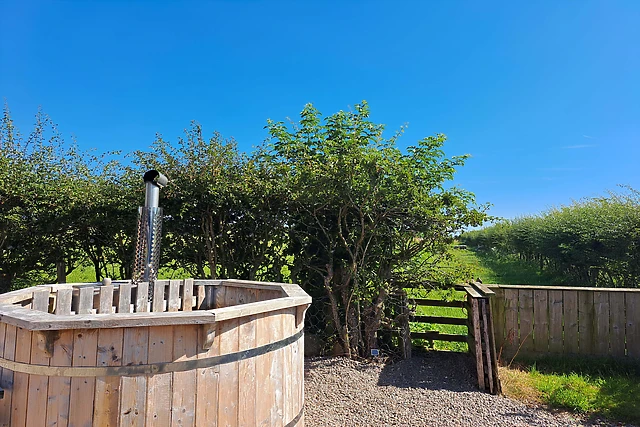 Continue into the kitchen to prepare meals, and fulfil your self-catering needs, before setting the patio table and enjoying an alfresco affair whilst surrounded by nature; spend the rest of your evening soaking in the wood-fired hot tub, before completing your nightly routine in the bathroom. Catch some rest in one of two bedrooms, including a king-size and a twin, before awakening to a hands-on experience on the neighbouring farm.