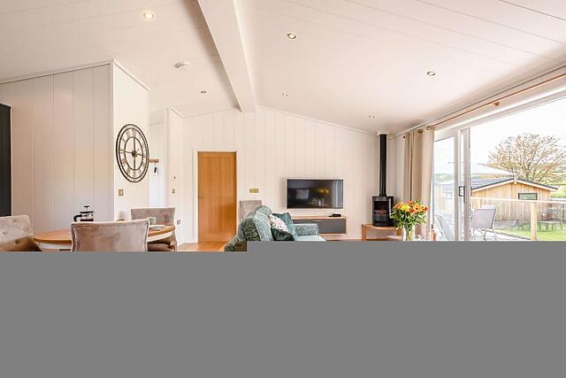Accommodating up to 4 guests in two elegantly appointed bedrooms, each with their own modern en-suite and patio doors, you're assured of comfort and privacy. The lodge's open-plan living space, complete with all the modern conveniences, offers a sociable area for relaxation.