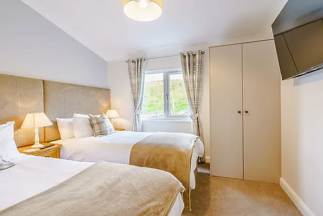 Accommodating up to 4 guests, the lodge boasts two well-appointed bedrooms, ensuring a cosy stay for both families and couples.