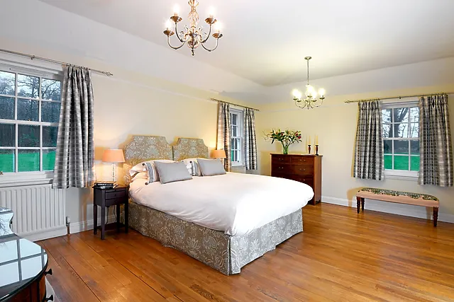 The master bedroom boasts a super-king-size zip-and-link bed, ensuring a restful night's sleep, and a spacious en-suite shower room.