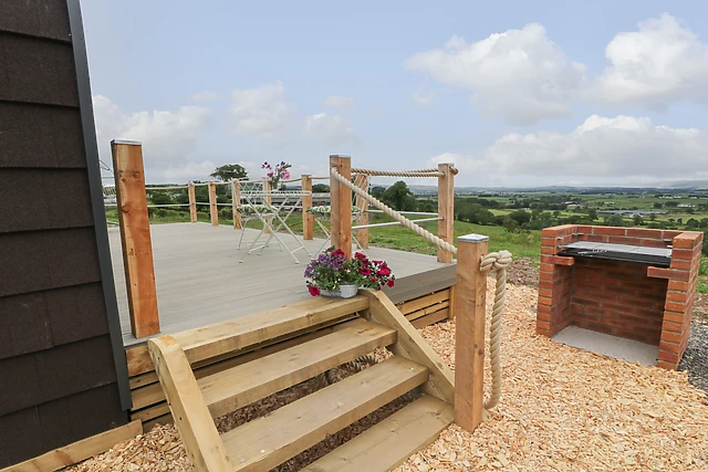 Step outside onto the private decking to find an egg chair and barbecue area, perfect for al fresco dining amidst breathtaking views.