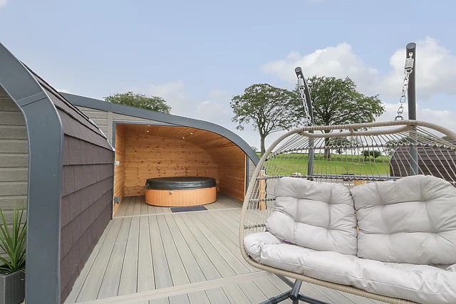 Indulge in the luxury of your own hot tub, perfect for unwinding after a day of exploration. The lodge also boasts a charming front decking area with an egg chair and barbecue facilities, set against the backdrop of breathtaking views.