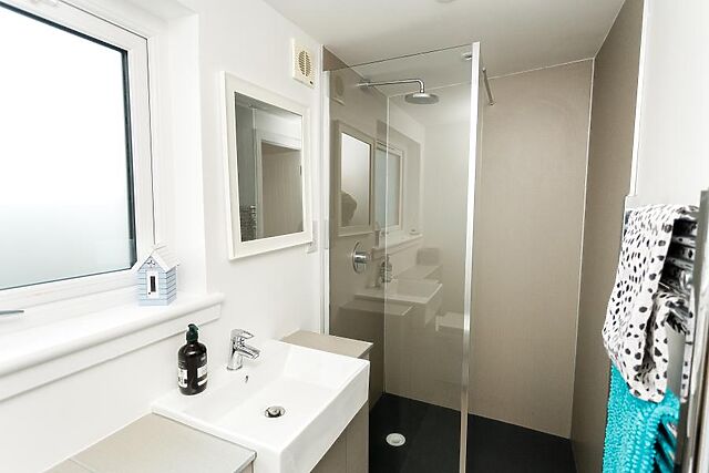 When it's time to retire for the night, a sumptuous king-size bed awaits. The property also features a light and refreshing shower room.