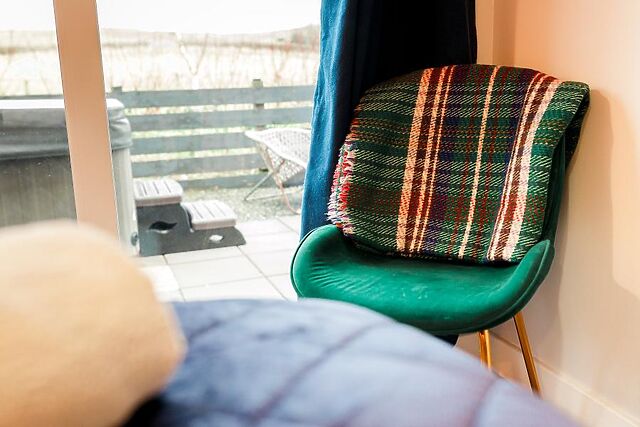 Stepping outside, the cheery garden has a sweet patio with outdoor furniture, offering a peaceful spot for a morning coffee or a wee dram in the evening, or you can settle back and luxuriate in the soothing hot tub. Parking is available for one car, along with bike storage, and there's also a useful laundry room, which is shared with the other properties on-site.