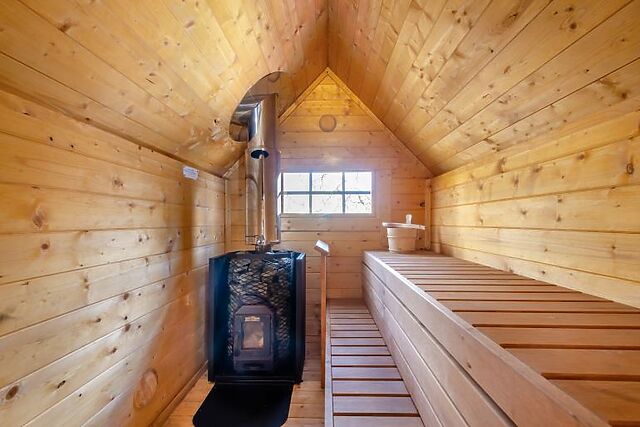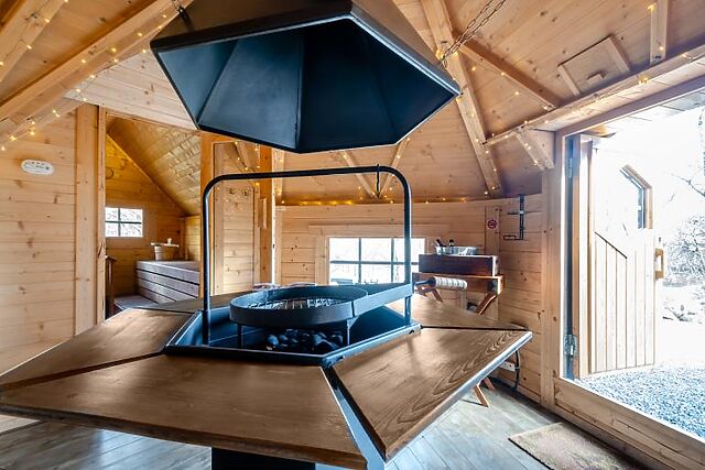 Step outside to discover a decked area ideal for al fresco dining, a BBQ grill cabin, and a private hot tub for six. The cabin also boasts a sauna, perfect for unwinding after a day of exploring the nearby trails.