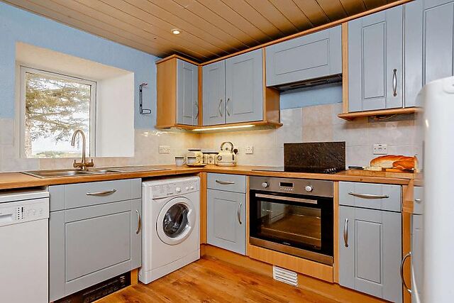 There’s even a wood burner to keep things cosy on chillier nights. Overlooking the lounge is a dining table, seating six people where you can linger over a delicious meal or play board games.