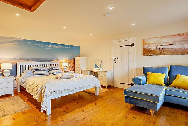Outside, enjoy a morning coffee at the garden table while contemplating the glorious sea views. Children will love to run free on the lawn but on windier days, the outdoor summer house is the ideal place to sit and play or plan your day’s adventure.