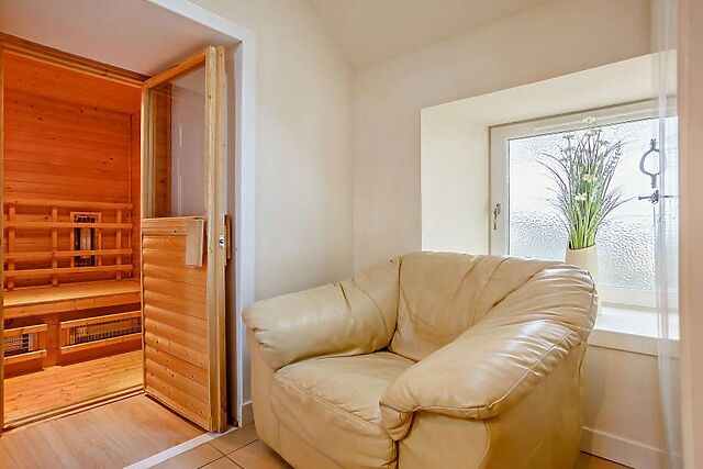 Extra comforts include under floor heating and an infrared sauna so you can soothe aching muscles at the end of the day. From the ground floor, a narrow stairway leads to the first floor and the twin and double bedrooms.