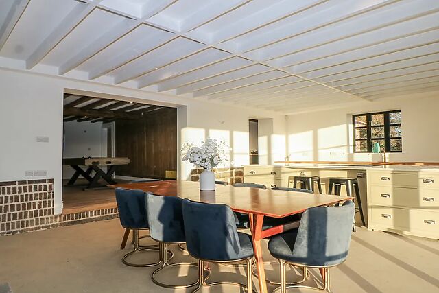 Farm House is an exceptional seven-bedroom property set in the tranquil village of North Chailey, East Sussex, offering a luxurious escape for large families or groups. This impressive home combines period charm with modern indulgence, showcasing original brickwork, exposed beams, and sweeping countryside views.