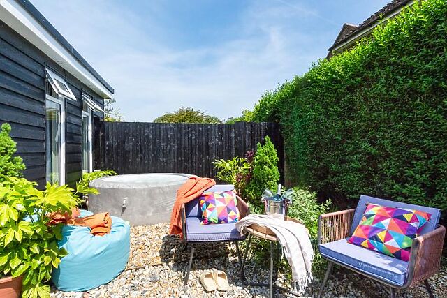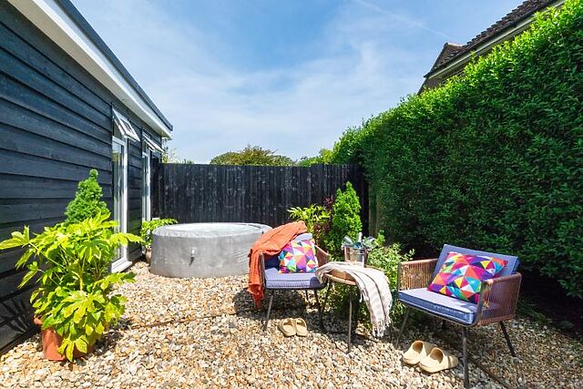 The garden is equipped with a table, chairs, barbeque, and a fire pit for those chillier nights. For an extra touch of luxury, a Lay-z-spa hot tub is available at an additional charge.