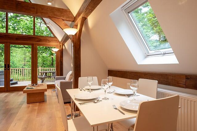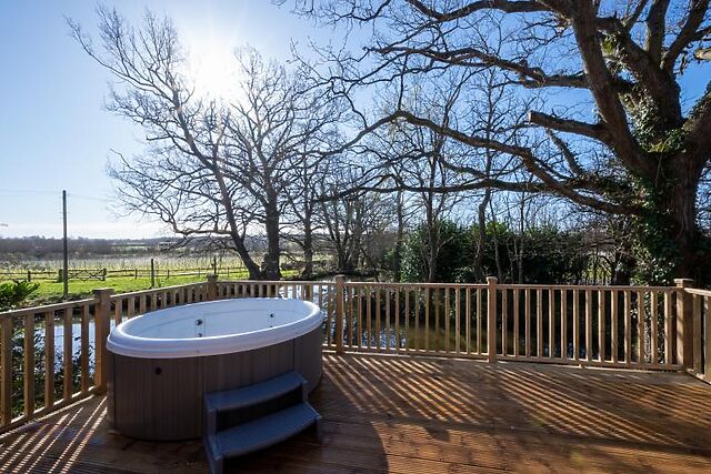 Step outside onto the decked balcony and you'll find a luxurious hot tub, perfect for unwinding with a glass of wine from the estate.