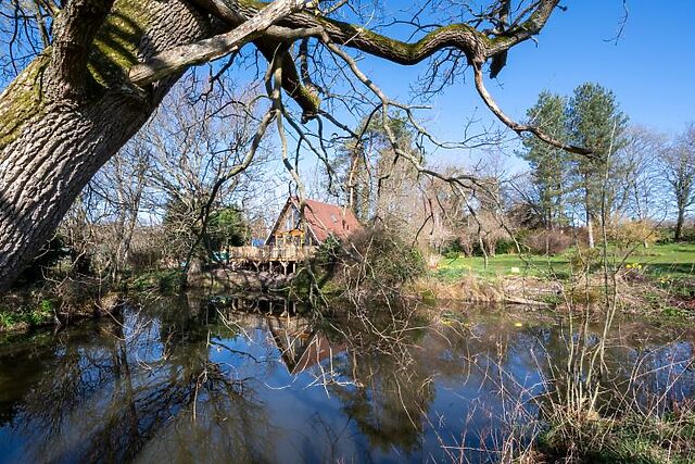 Welcome to Waterside Lodge, a stunning retreat located in Bodiam, Sussex. This contemporary lodge house, set on the picturesque Oastbrook Estate vineyard, sleeps up to four guests in two beautifully appointed bedrooms.