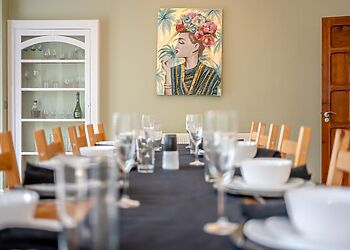 - Well-equipped kitchen with modern appliances and a dining area for meals indoors or on the deck. Bedrooms and bathrooms