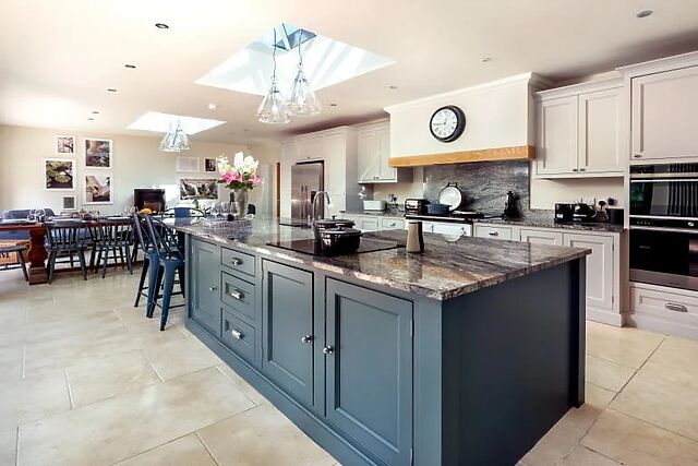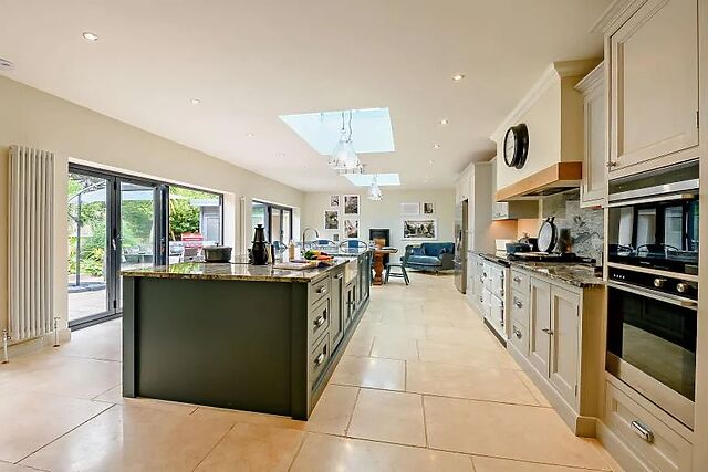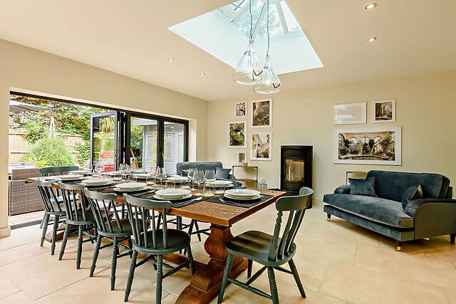 The home features a games room, cinema room, and a playroom, ensuring entertainment for all ages. The stunning kitchen/diner, with its long banquet table and French doors, creates a bright and airy space for memorable meals.