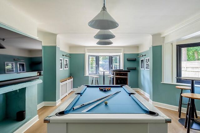 The property features a games room with a pool table, a cinema room with a large Smart TV, and a playroom filled with toys, ensuring entertainment for all ages.