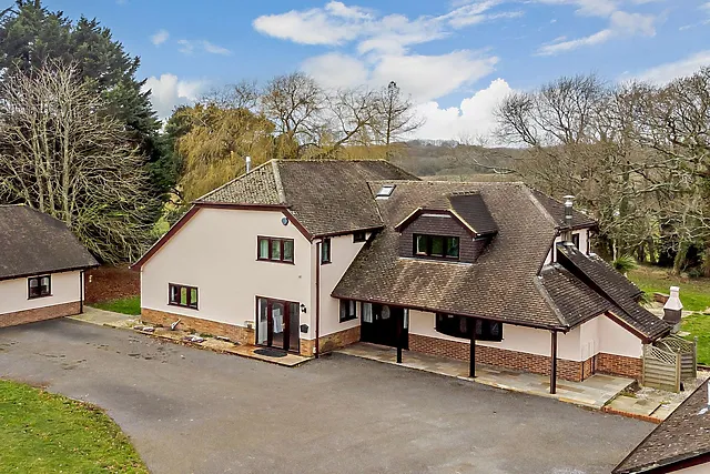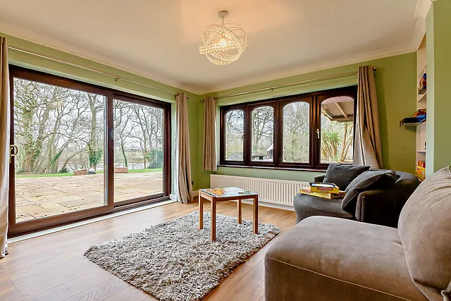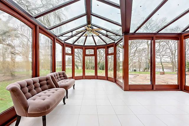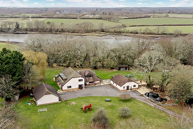 Step inside to discover a world of leisure with a games room, an inviting lounge with a wood burner, and a sunroom offering distant views over the lush garden to the river.