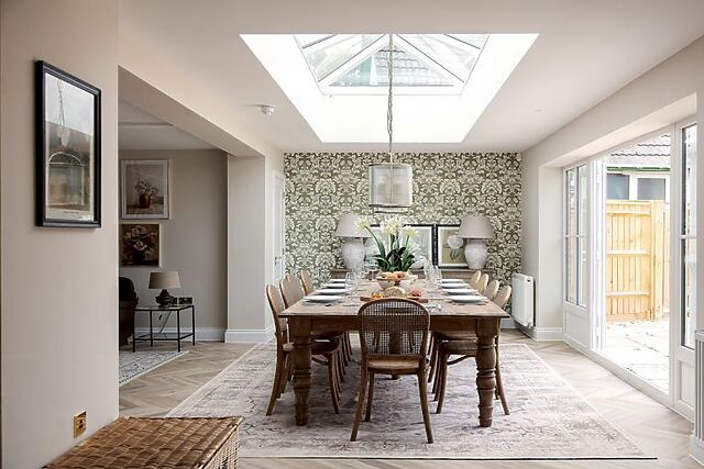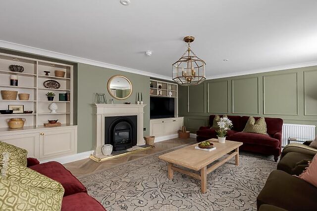 The kitchen space seamlessly flows into the dining area, where a large wooden dining table will host many dinner parties or board game nights. When you're full, the cosy living room is a dream to retire to, nestled around the fireplace for an evening of unwind.