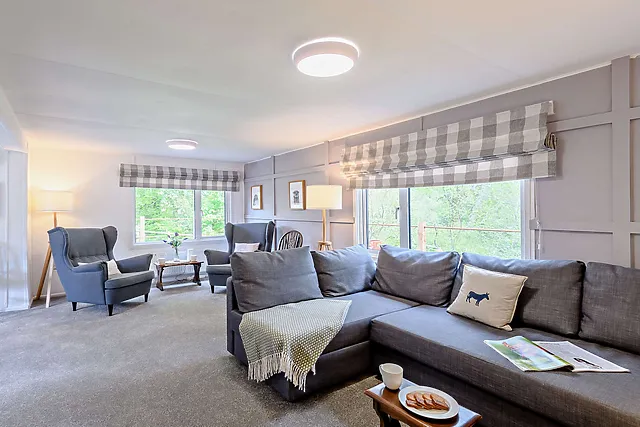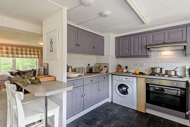 Inside, the open-plan lounge/kitchen/diner welcomes you with all the comforts of home, including a Smart TV and a well-equipped kitchen.