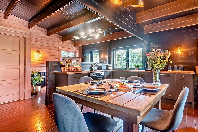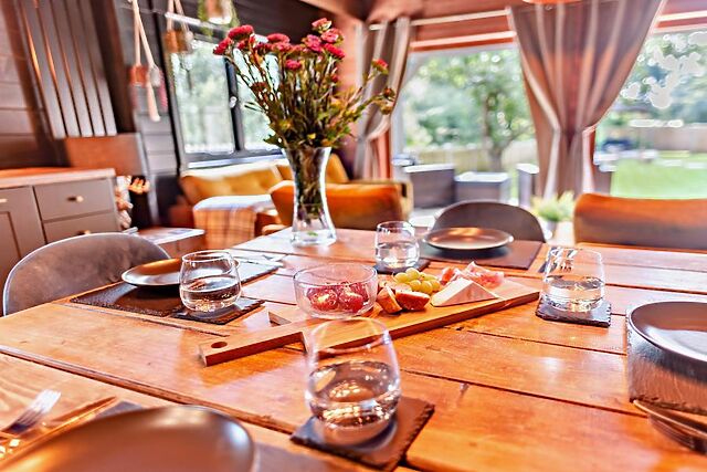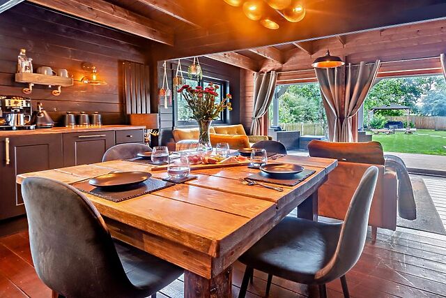 After a day of exploring the local area, retreat to this beautiful lodge with a spacious open-plan lounge/kitchen/dining area and exposed beams. Sink into comfortable sofas and armchairs, enjoy a movie on the Smart TV, or savour a meal together at the dining table.