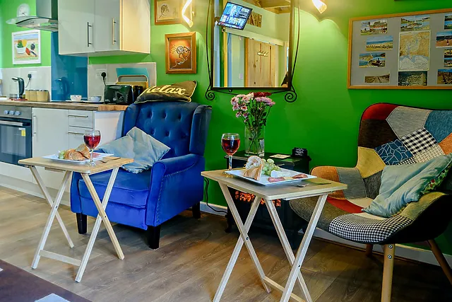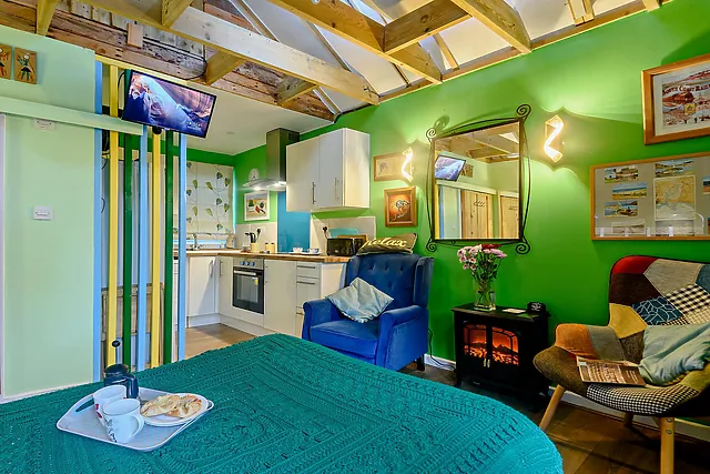 The Barn is a haven of comfort, with a fully equipped kitchen, smart TV, and a comfortable pull-down bed, ensuring a restful night's sleep.