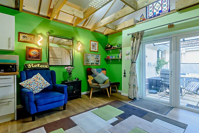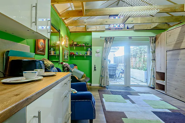 Step outside to the south-facing private patio, where you can savour your morning coffee or soak up the sun on the loungers. The enclosed garden adds to the sense of privacy, making it a perfect spot for a rejuvenating break.