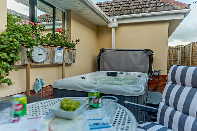 Indulge in the luxury of a private hot tub, an ideal spot to relax and let your cares melt away.