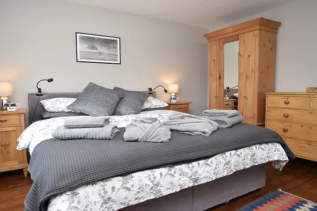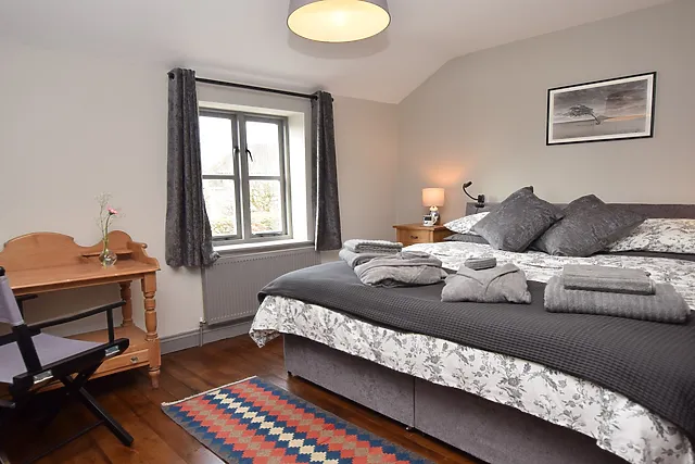 The accommodation boasts four well-appointed bedrooms, including three super-king-size zip-and-link rooms, providing flexible sleeping arrangements to suit your group's needs.