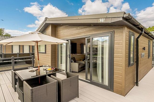 Indulge in the luxury of a private hot tub, perfect for unwinding after a day of exploring the New Forest. The lodge's wraparound decking invites al-fresco dining amidst the beauty of nature.