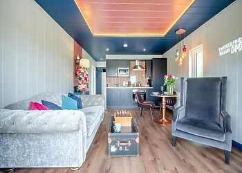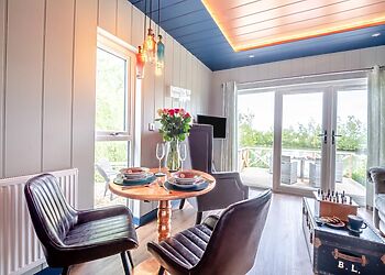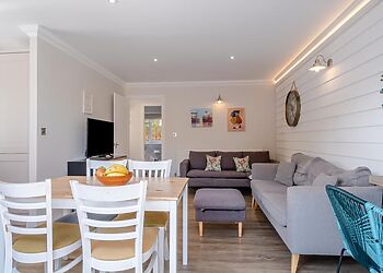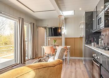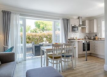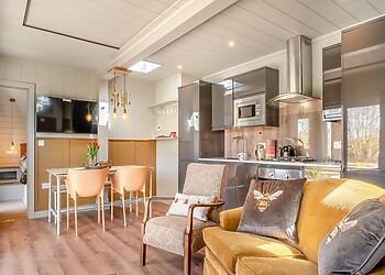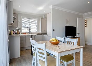 An eco-friendly lodge located in Pondwell, Seaview. Offers three bedrooms, including a king-size room, a twin and a single, all with TVs. The open-plan kitchen and living area are fully equipped with modern amenities.