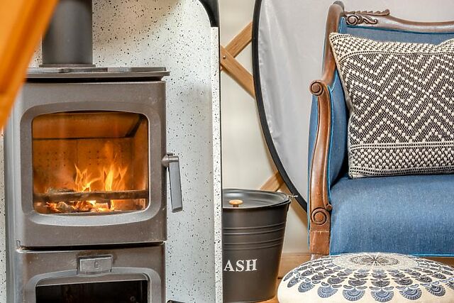 As you step inside, you'll find a cosy atmosphere with tasteful furnishings, including a wood-burning stove to keep you warm on cooler evenings.