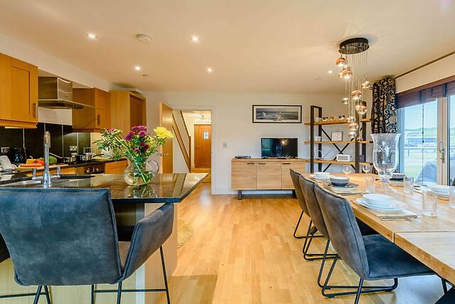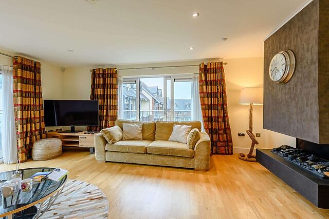 Experience culinary delight in the fully equipped kitchen and gather around the spacious dining area for memorable meals. Unwind in the plush lounge with its cosy electric fire feature and Smart TV, or step out onto the balcony to soak up the tranquil surroundings.