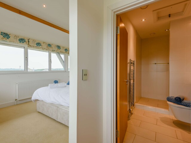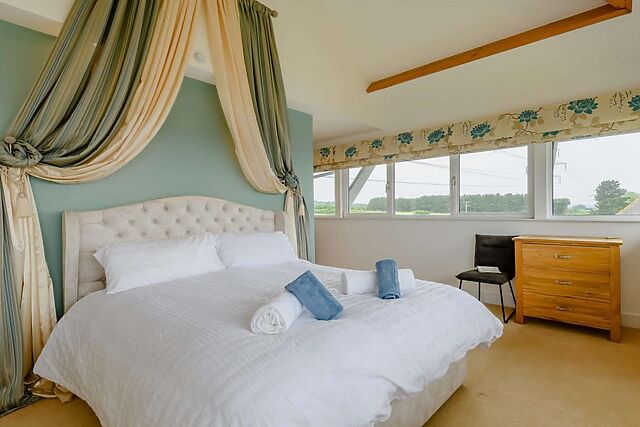 The accommodation sleeps up to 8+1 guests. It has four bedrooms, including a master bedroom with a king-size bed and an en-suite shower room.