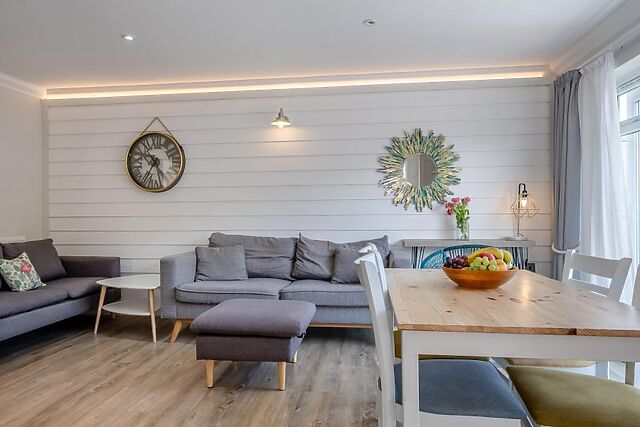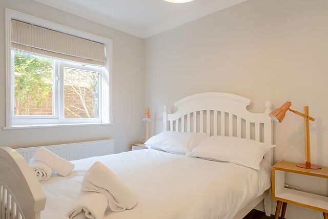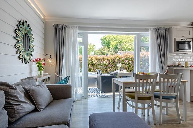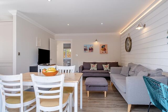 A Smart TV ensures an entertaining night for all guests, while the sofa is comfortable and beckons visitors to curl up with a book. The double bedroom offers both comfort and convenience with storage and calming decor, while the twin bedroom provides a similar style and two single beds.